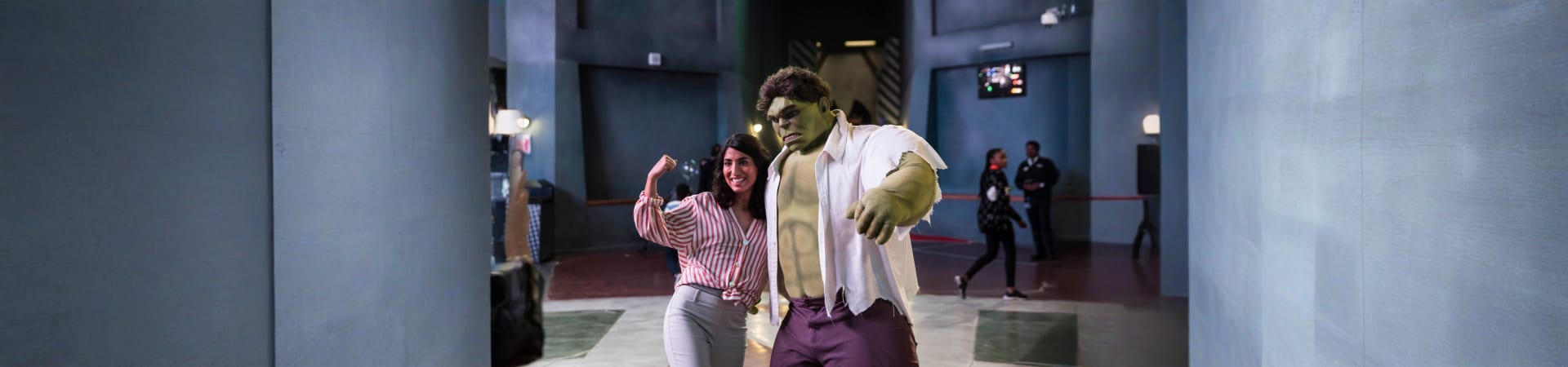 The park is divided into four immersive zones — Marvel, Lost Valley – Dinosaur Adventure, Cartoon Network, and IMG Boulevard — each delivering a unique and action-packed experience. From high-speed roller coasters like the Velociraptor to interactive 3D and 5D attractions, IMG Worlds guarantees unforgettable excitement.